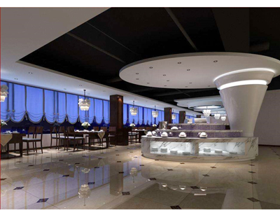 餐廳的聲環境設計中最重要的吸聲表面就是餐廳的吊頂,不僅因其面積較大,而且吊